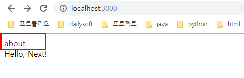 서버 실행 후 url 접속 창에 /about 을 입력합니다.
