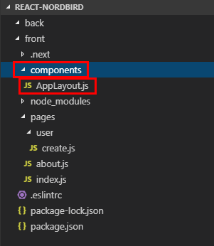 중복되는 레이아웃을 쉽게 관리하기위해 components 폴더와 그 하위에 AppLayout.js 파일을 만듭니다.