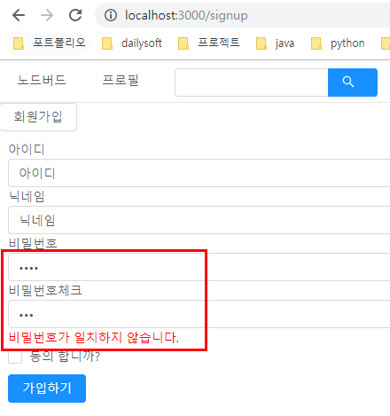 * 1. 비밀번호와 비밀번호 체크가 다를 경우를 검증한다