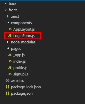 component 폴더 안에 LoginForm.js 를만듭니다.