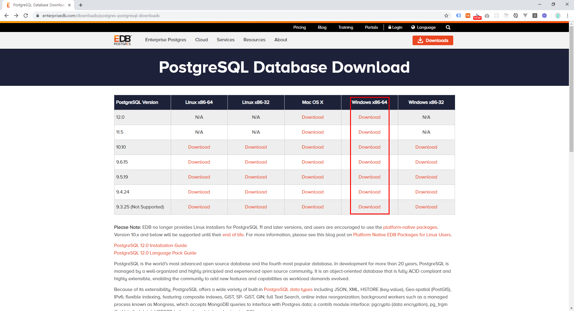 링크 : https://www.postgresql.org/download/windows/