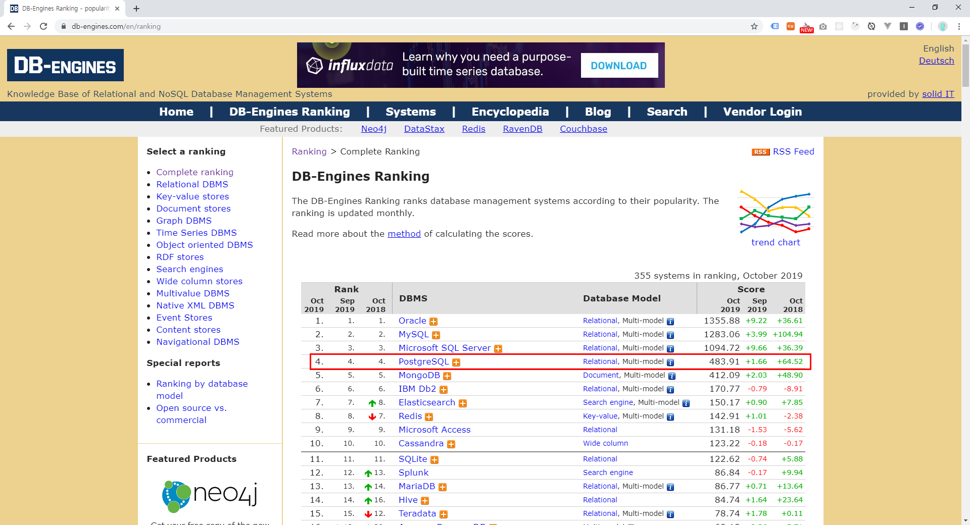 2019년도 랭킹을 보면 매우 높은 점유율을 가지고 있는 RDBM중 하나입니다.