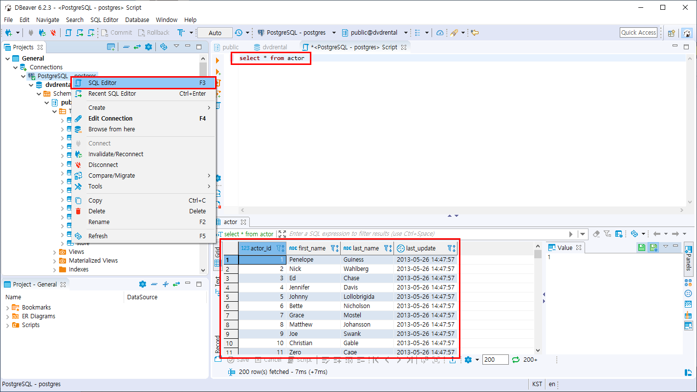 13. 실행 후 actor table 조회하기