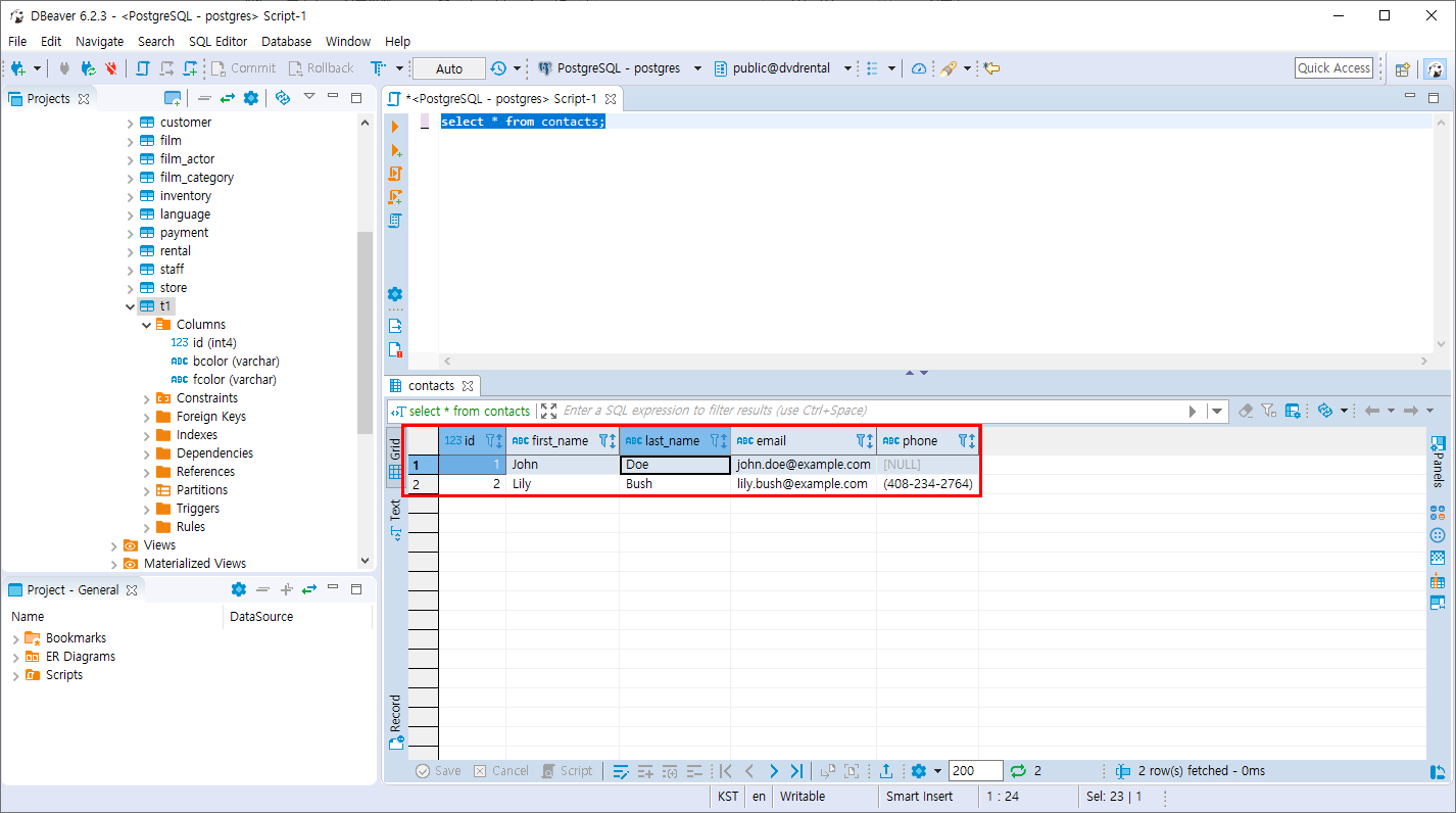 select * from contacts;