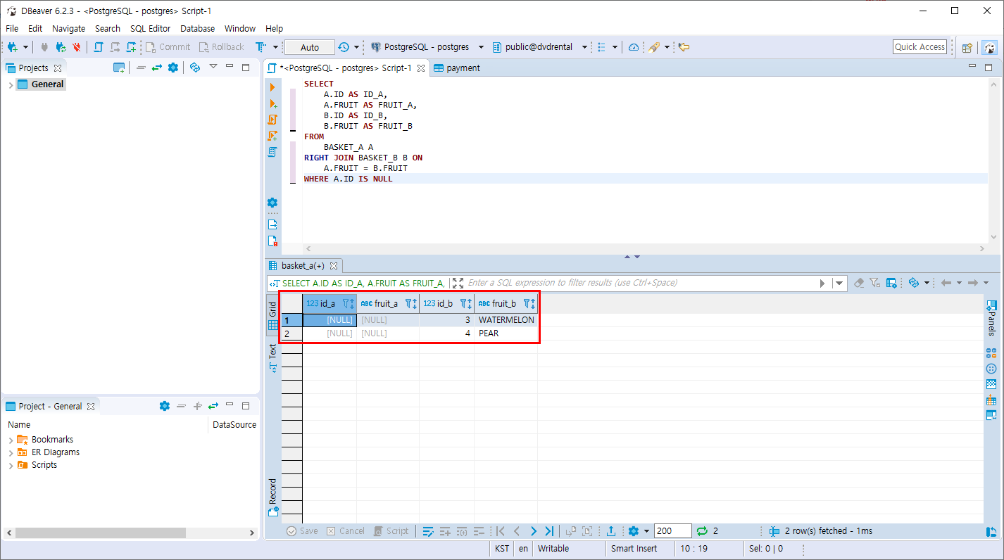 - B의 테이블에만 존재하는 데이터를 조회합니다 . RIGHT ONLY