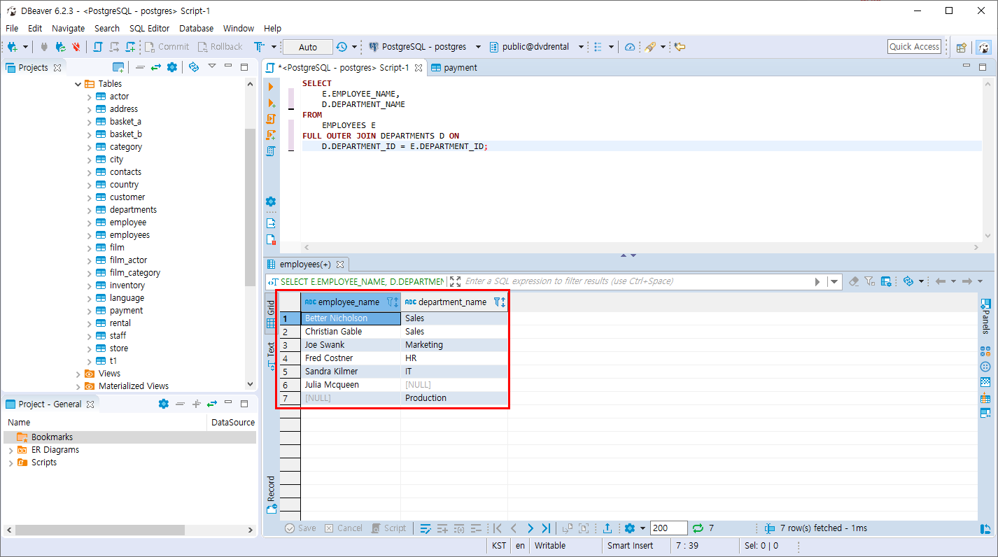 PostgreSQL FULL OUTER 조인 본문
