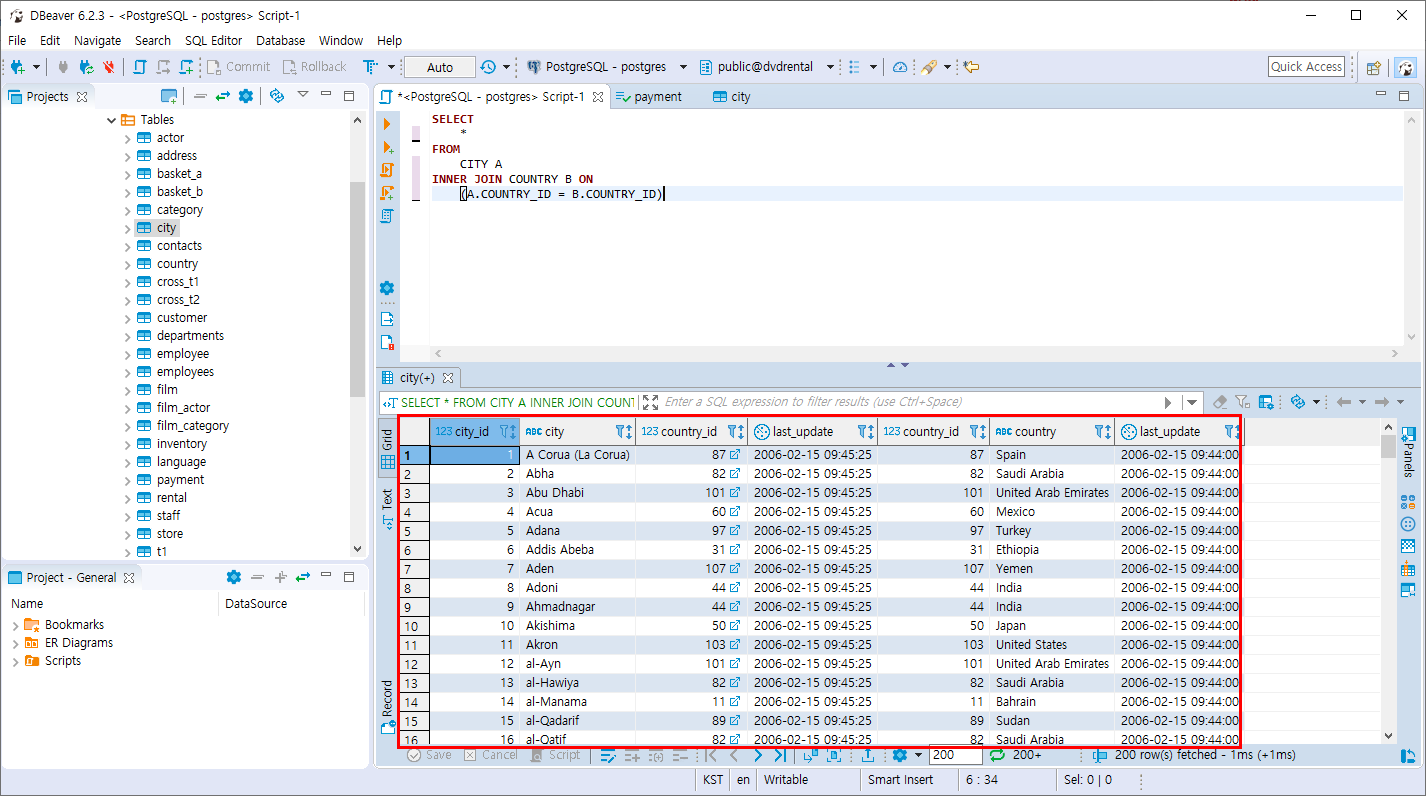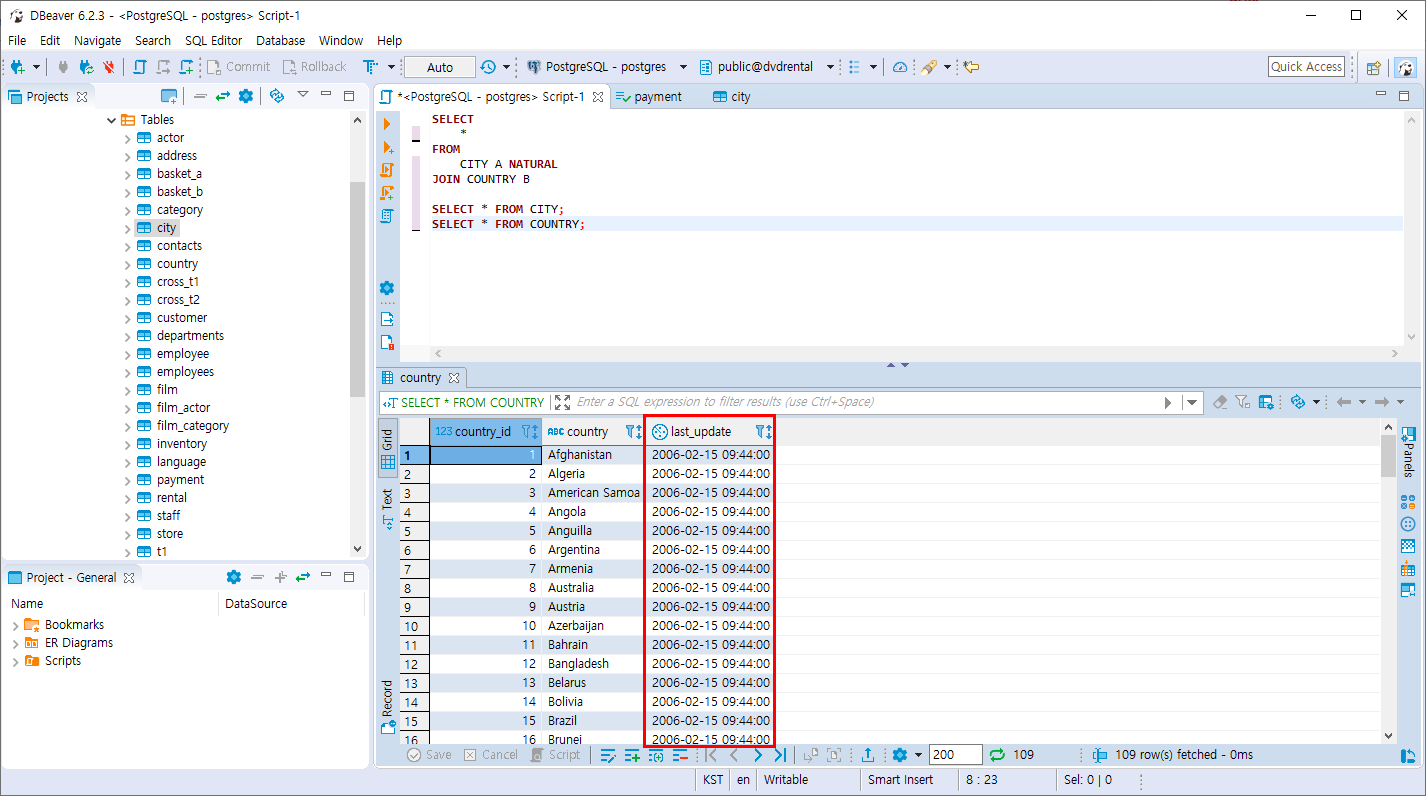 CITY 테이블과 COUNTRY 테이블 모두 last_update 라는 컬럼을 가지고 있습니다.