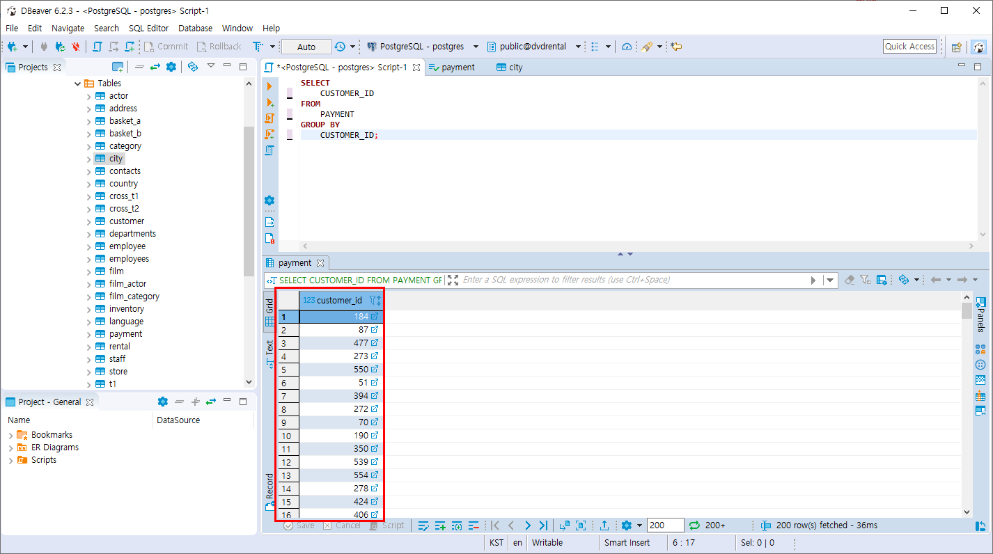 PAYMENT 테이블은 payment_id 가 기본키 이기때문에 유일한 값입니다. 하지만 customer_id(1명의 id) 는 여러개의 payment_id 를 가질수 있습니다.