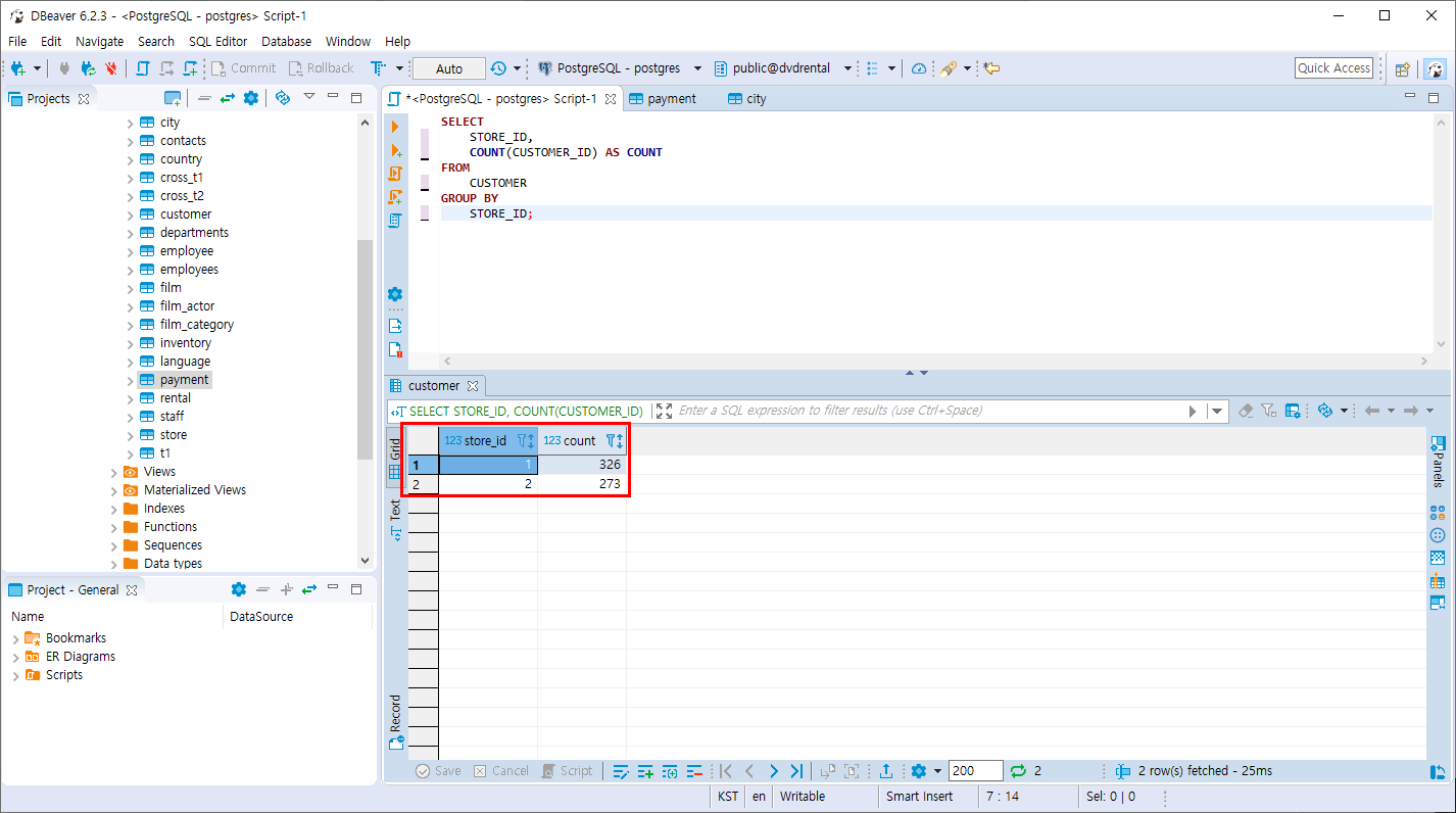 - CUSTOMER 테이블을 STORE_ID 기준으로 GROUP BY 하여 조회합니다.