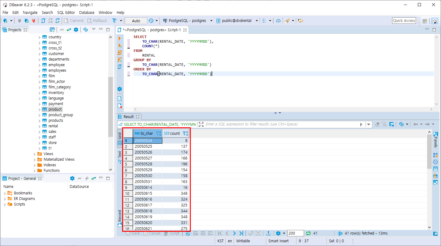 TO_CHAR(RENTAL_DATE, 'DD') AS DAY,