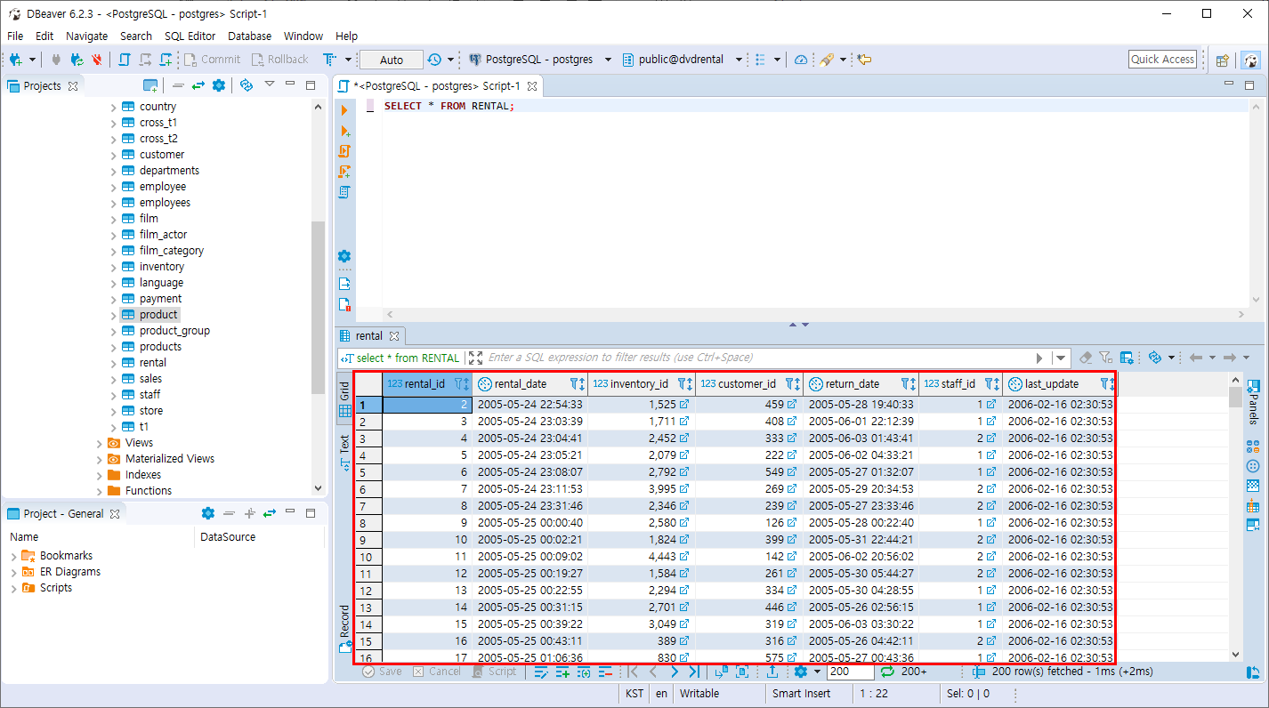 SELECT * FROM RENTAL;