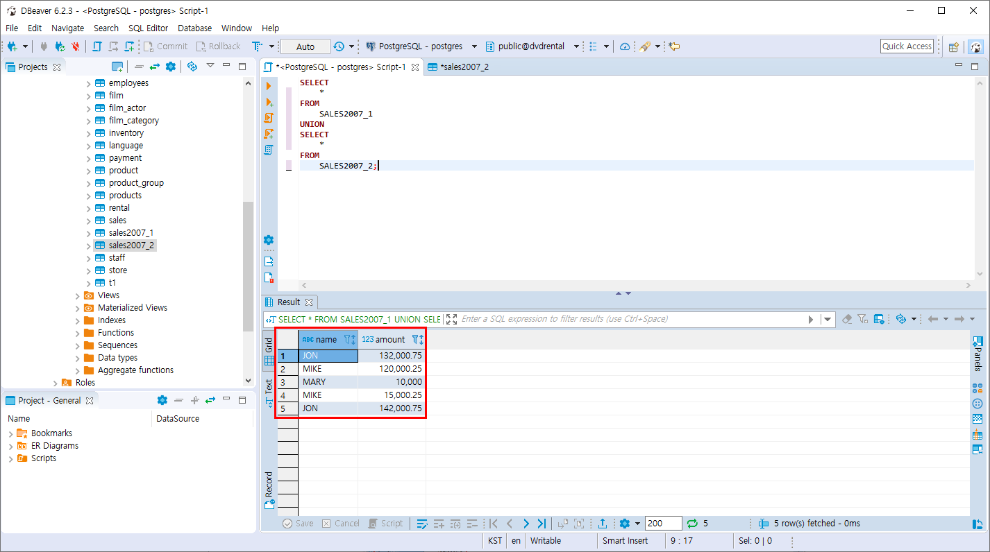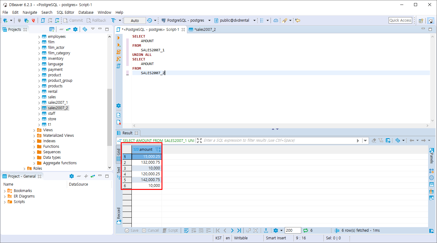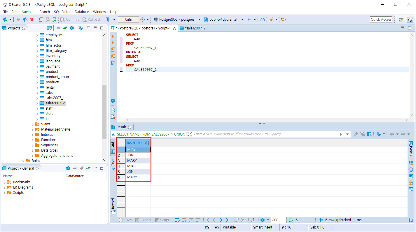 PostgreSQL UNION 연산 , UNION ALL 연산 본문