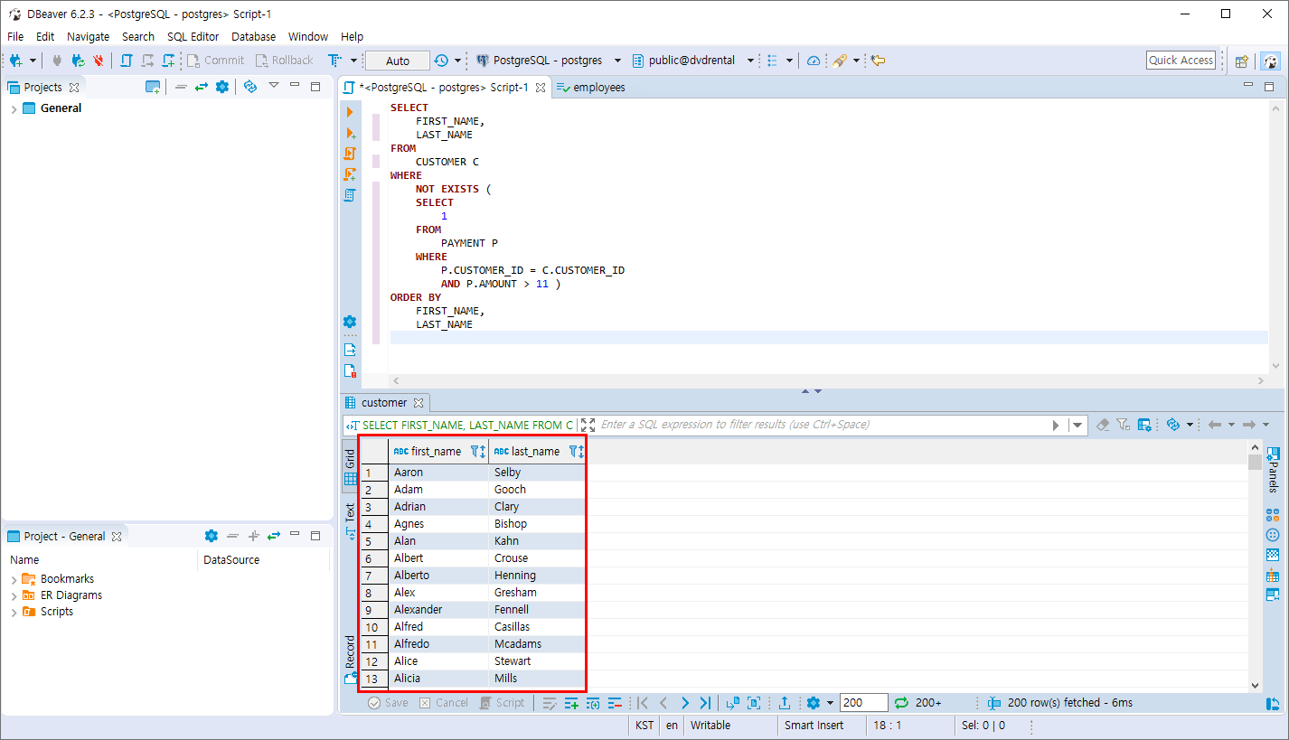 PostgreSQL EXISTS 연산자 본문