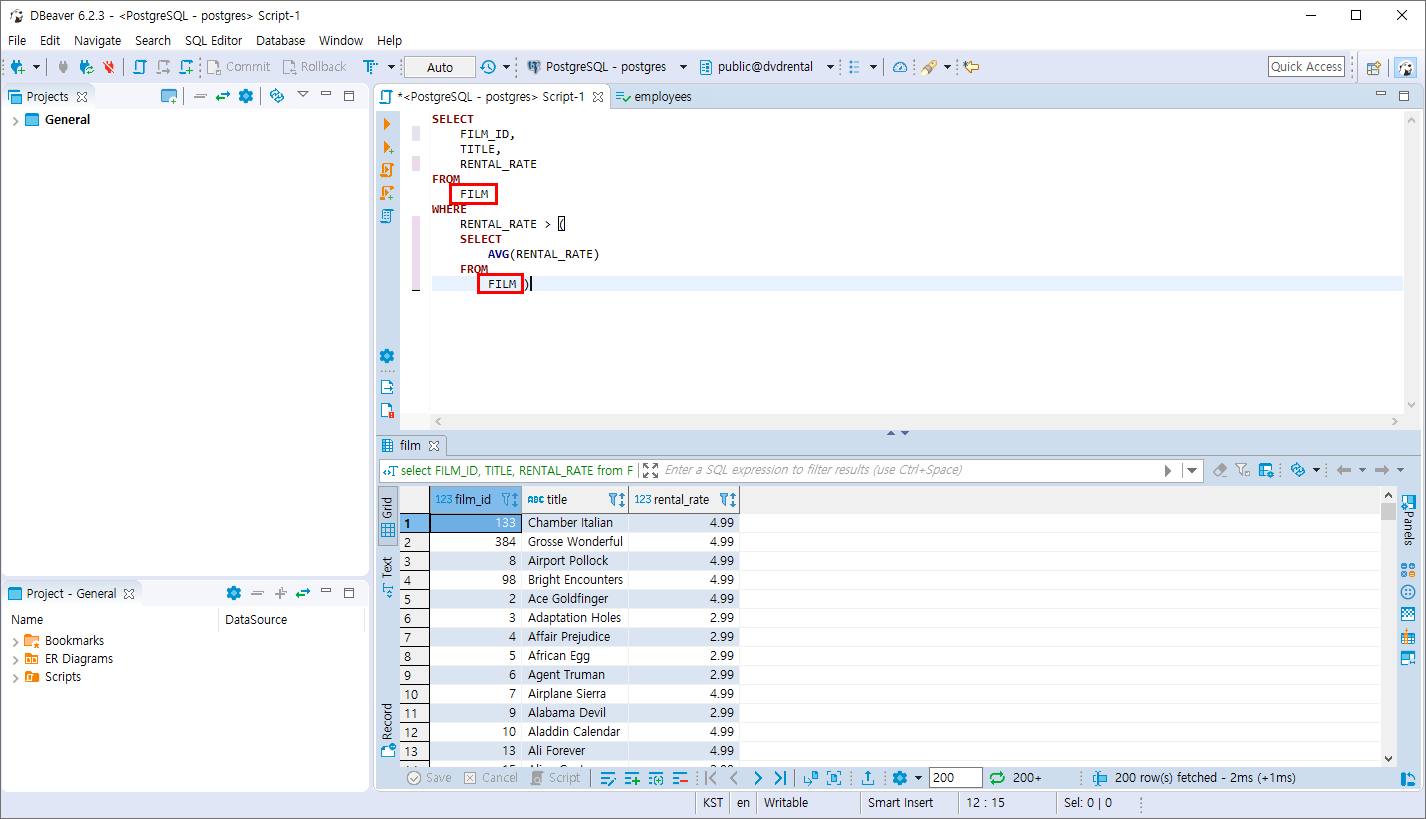 2. 인라인 뷰 서브쿼리를 활용하여 FILM 테이블 A가 됩니다.