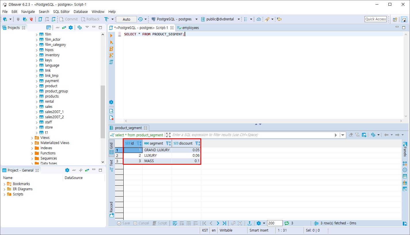 - PRODUCT_SEGMENT 테이블 생성 후 데이터 저장