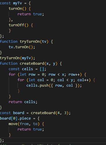 4x3의 체스판을 구현하는 함수이다. es6에서 객체의 속성명과 변수명이 같으면 축약할 수 있다.