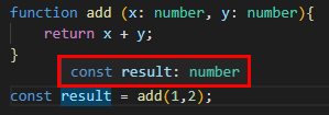 더하기 함수인 add의 x , y는 숫자이므로 타입스크립트에서 result는 number 타입으로 추론을 합니다.