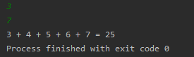 a부터 b보다 작을때까지 반복하게 되면 3 + 4 + 5 + 6 까지 출력 입력된 그리고 가장 마지막 값인 b또는 i를 출력 하게 되면 3 + 4 + 5 + 6 + 7 이된다. 그 후 마지막값을 더해주고 그 결과 값에 = 을 붙여 출력하면 된다.
