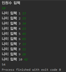 그냥 나이를 담아서 비교후 계산 , 하지만 나이를 한명한명 입력하는건 배열에 굳이 담을 필요가 없음