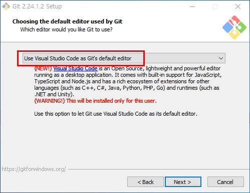 전 Visual Studio Code 를 사용하기 때문에 같이 사용하겠다고 설정 했습니다.