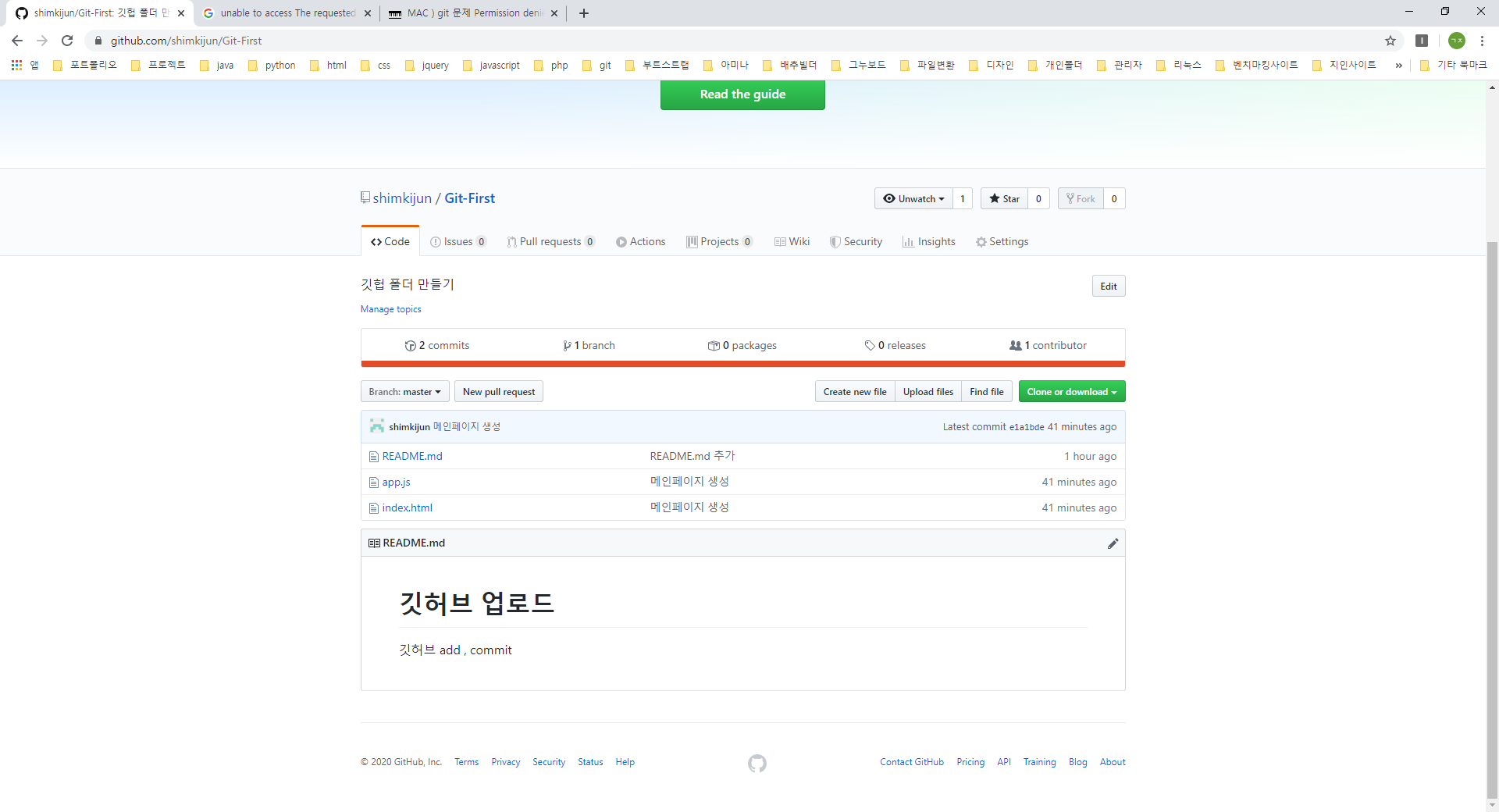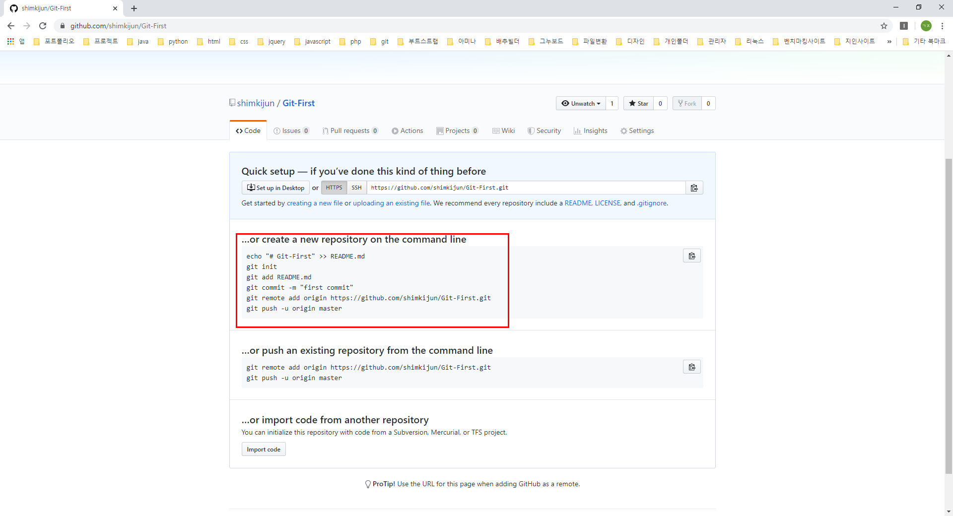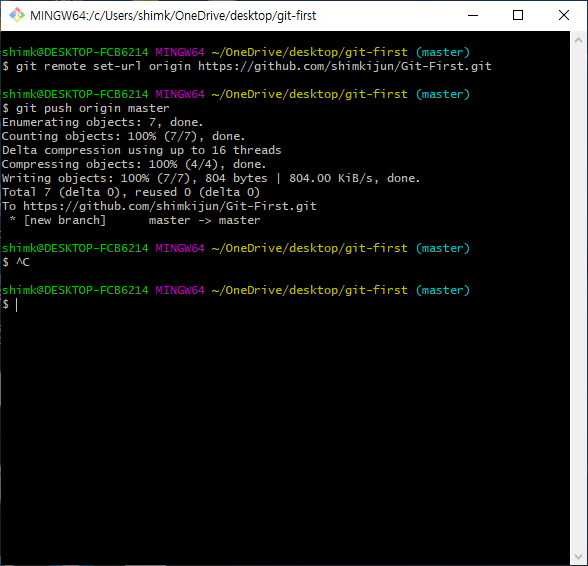 $ git remote set-url origin https://github.com/shimkijun/Git-First.git 명령어 작성후 다시