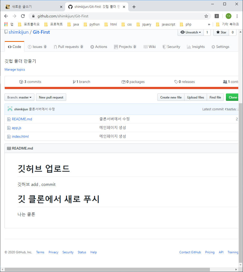 git-clone에서 수정한 파일을 같은 Git Hub 저장소에 업로드