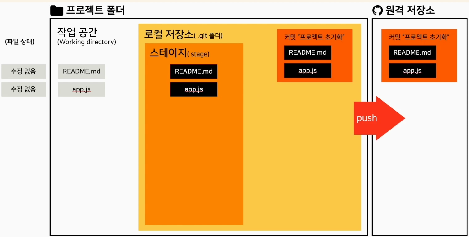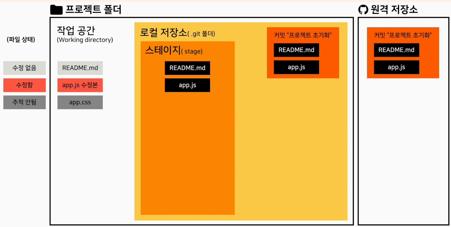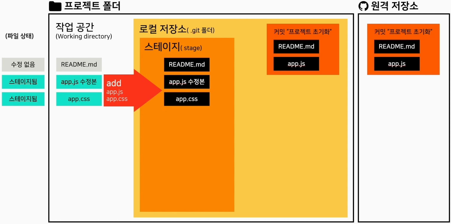 git init을 하면 .git 폴더가 생기며 stage 라는 공간이 생김
