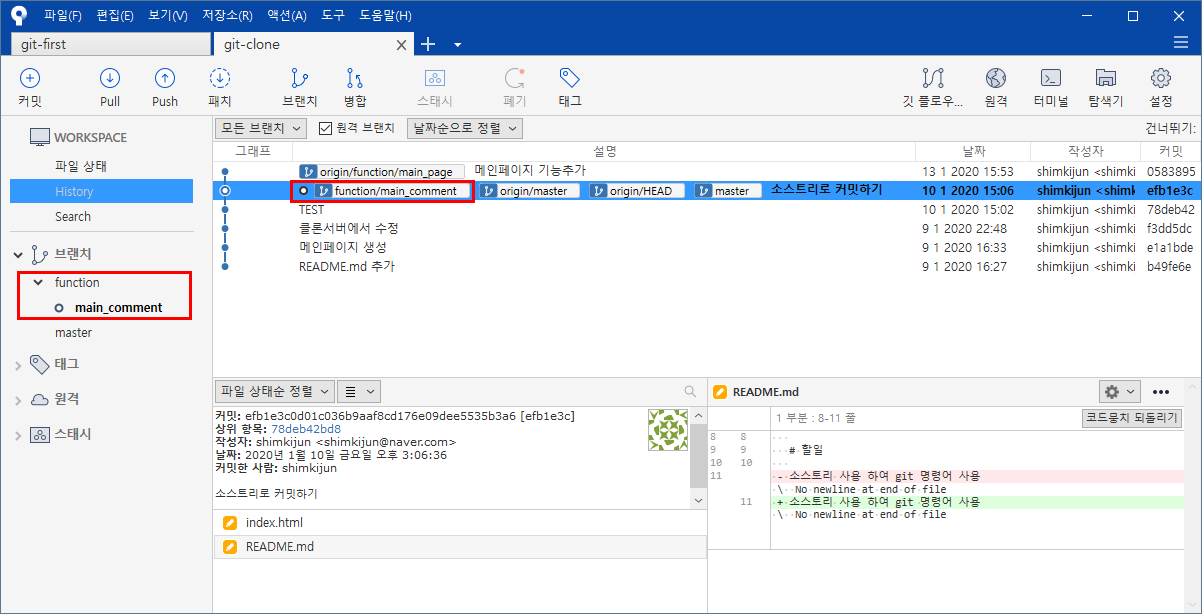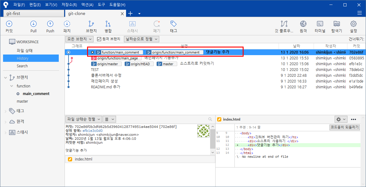 git-clone 폴더는 댓글 기능을 개발하는 function/main_comment의 브랜치를 생성