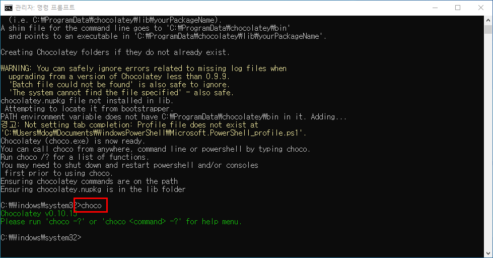 관리자 권한으로 커맨드 창을 열어줍니다.